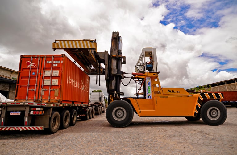 Dispomos de empilhadeiras para o manuseio de containers cheios e vazios. Esse diferencial traz praticidade e otimiza a organização da carga na hora do despacho. Também possuímos uma filial no Porto de Suape, em Pernambuco.